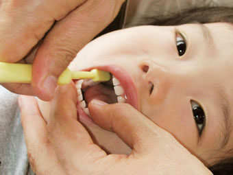 また、ときどきお子さまに歯ブラシを持たせて、歯みがきに慣らさせるといいでしょう。