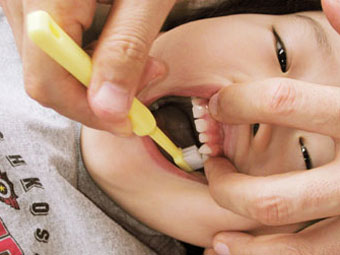ひとりで歯をみがけるようになるまでは、 お父さんやお母さんとお子さんとのチームプレイになります。 まず、ご両親が正しい歯のみがき方を覚えて、 お子さんの歯を守ってあげてください。